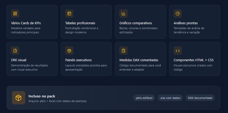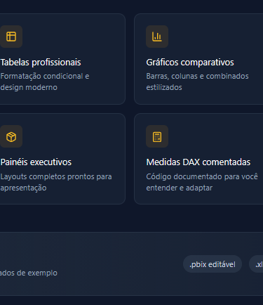 Os templates prontos e o dax comentado facilitaram demais meu dia a dia. Agora posso focar na análise, não na formatação.