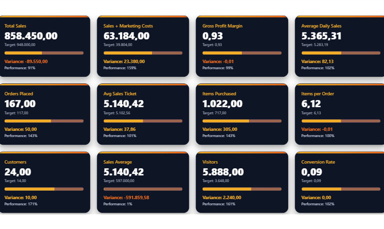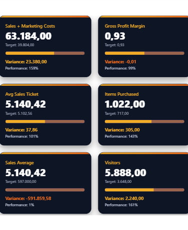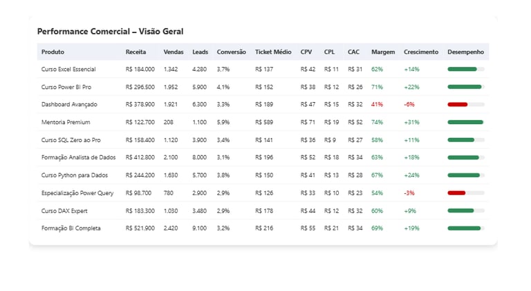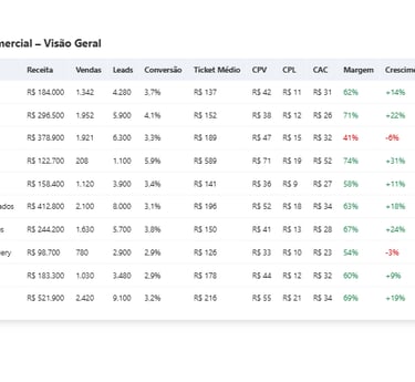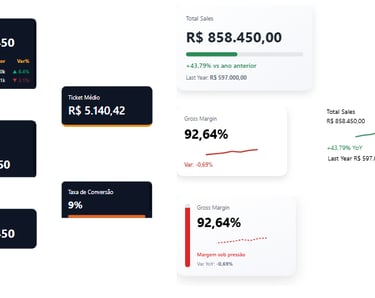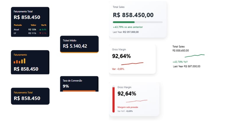 Todos desenvolvidos com DAX otimizado, HTML + CSS customizado e foco em UX.